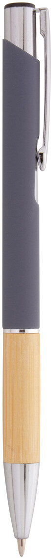 Hliníkové kuličkové pero s bambusovým úchopem, pogumovaným povrchem a modrou náplní. Se speciální vrstvou pro zrcadlové laserové gravírování.