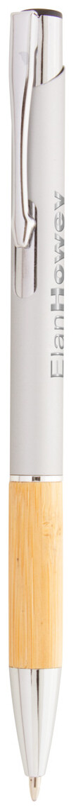 Hliníkové kuličkové pero s bambusovým úchopem, pogumovaným povrchem a modrou náplní. Se speciální vrstvou pro zrcadlové laserové gravírování.