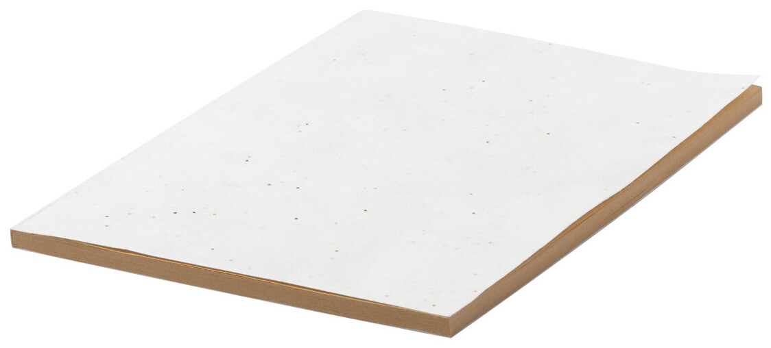 Blok A5 z recyklovaného kraftového papíru potažený papírem se semínky se 60 čistými listy. Obal papíru se semínky obsahuje semena petúnie v různých barvách, která lze zasadit oddělením obalu od sešitu.