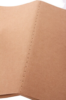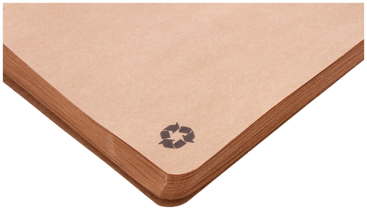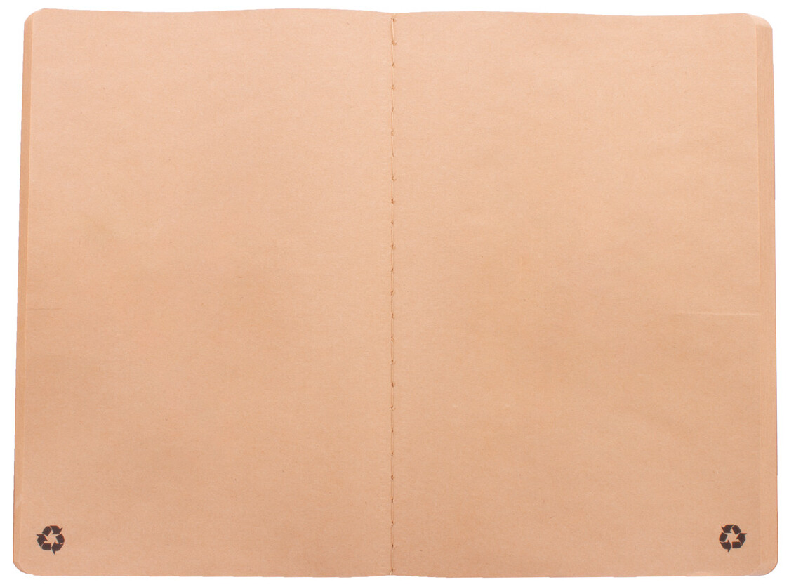 Blok A6 s deskami z recyklovaného papíru, šitý a 60 prázdnými listy z recyklovaného kraftového papíru.