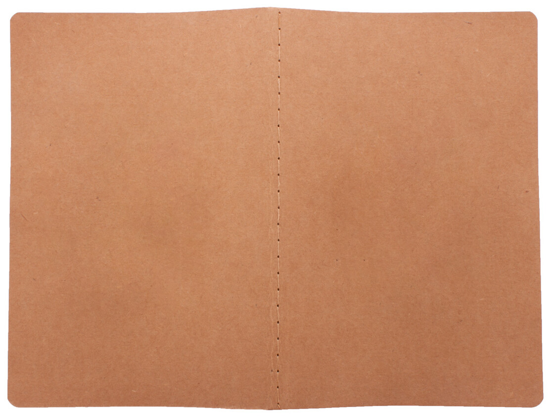 Blok A5 s deskami z recyklovaného papíru, šitý a 60 prázdnými listy z recyklovaného kraftového papíru.