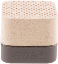 Bezdrátový reproduktor v ekologickém plastovém krytu z pšeničné slámy s gumovou spodní částí, vícebarevným LED světlem a vestavěnou dobíjecí baterií. S funkcemi handsfree volání a přehrávače micro SD. Včetně nabíjecího kabelu USB.