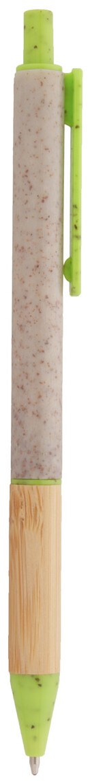 Ekologické plastové kuličkové pero z pšeničné slámy s bambusovým úchopem a barevnými částmi. S modrou náplní.