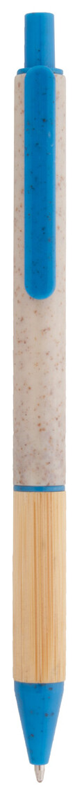 Ekologické plastové kuličkové pero z pšeničné slámy s bambusovým úchopem a barevnými částmi. S modrou náplní.
