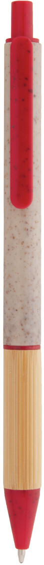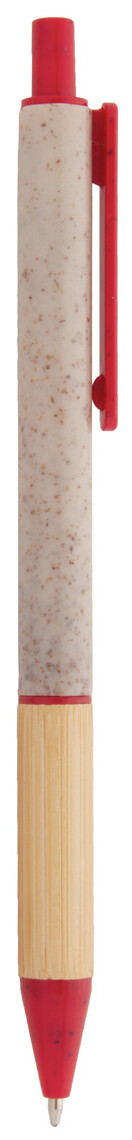 Ekologické plastové kuličkové pero z pšeničné slámy s bambusovým úchopem a barevnými částmi. S modrou náplní.