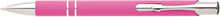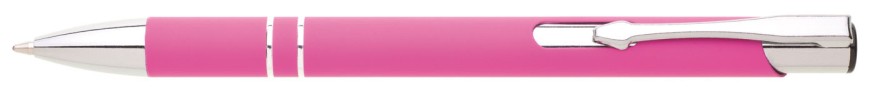 Hliníková propiska se stříbrnými doplňky a měkkým pogumovaným povrchem soft v růžové barvě. Modře píšící.