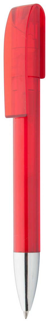 Plastové kuličkové transparentní barevné pero s chromovou špičkou a s modrou náplní.