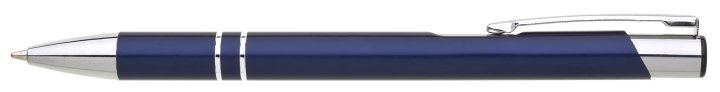 ALBA je velmi oblíbená hliníková reklamní tužka. Matné, modré navy tělo se dvěma stříbrnými proužky a chromovými doplňky.