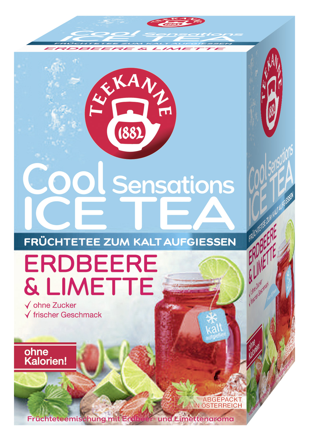 TEEKANNE Cool Sensations je lahodný a osvěžující ovocno-bylinný čaj, který byl speciálně vyvinut pro přípravu se studenou vodou. TEEKANNE Cool Sensations nabízí osvěžující potěšení z pití bez kalorií a bez cukru.
