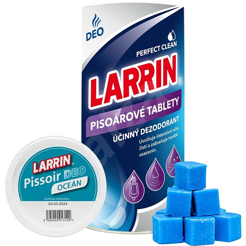 Larrin Deo kostky do pisoáru oceán 900 g jsou účinným prostředkem pro udržení hygieny pisoárů s osvěžující vůní oceánu, ideální pro komunální použití.