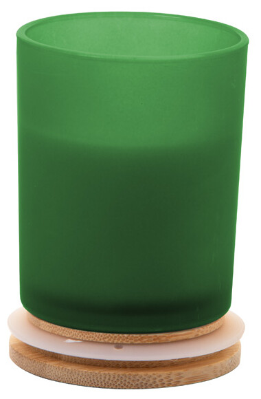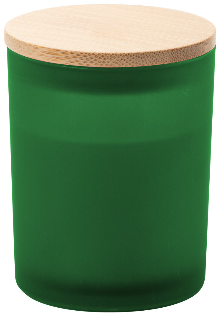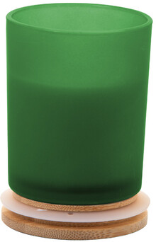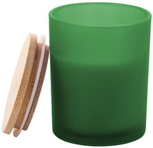Vosková svíčka na rostlinné bázi v matné skleničce s bambusovým víčkem. Se 120 gramy vosku. V kraftové papírové krabici.
