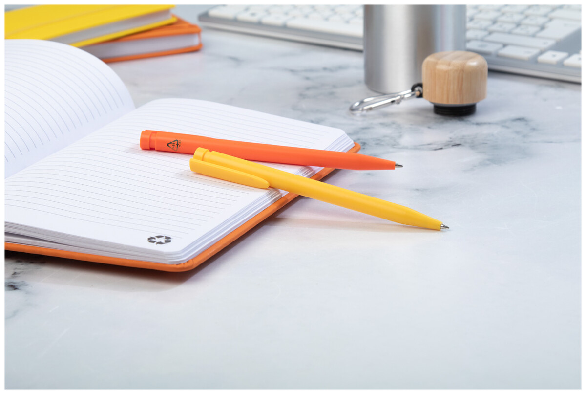 Recyklované ABS kuličkové pero s modrou náplní.