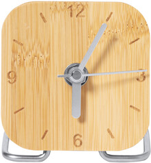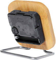 Stolní hodiny z bambusu a nerezové oceli. Funguje na 1 AA baterii, bez baterie.