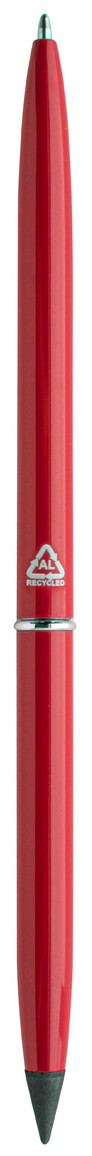 Otočné kuličkové pero 2v1 z recyklovaného hliníku a pero bez inkoustu. S modrou náplní a špičkou z kovové slitiny, která oxiduje papír. Toto pero píše podobně jako tužka a navíc je stíratelné.