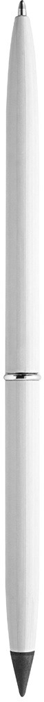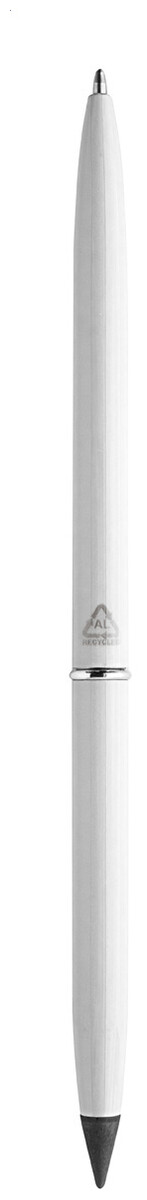 Otočné kuličkové pero 2v1 z recyklovaného hliníku a pero bez inkoustu. S modrou náplní a špičkou z kovové slitiny, která oxiduje papír. Toto pero píše podobně jako tužka a navíc je stíratelné.