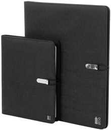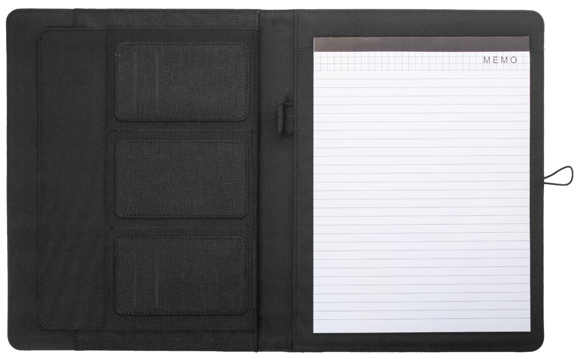 Polyesterová složka na dokumenty A4 z 300D RPET s 25 linkovaným poznámkovým blokem a několika vnitřními kapsami s organizérem.