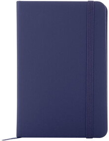 Blok potažený recyklovanou PU kůží se 100 linkovanými listy z recyklovaného papíru. Se záložkou v odpovídající barvě a gumičkou. Velikost A6.