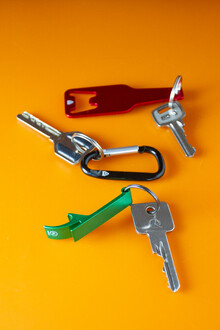 Karabina z recyklovaného hliníku s kovovým kroužkem na klíče.