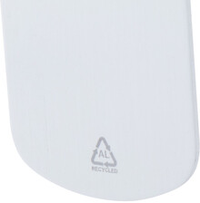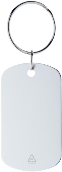 Přívěšek na klíče z recyklovaného hliníku s kovovým kroužkem.