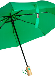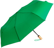 Plně automatický (otevřít/zavřít), větruodolný skládací deštník s 8 panely v pouzdře v odpovídající barvě. S kovovým rámem, sklolaminátovými žebry a bambusovou rukojetí. Pongee 190T RPET. S výrazným štítkem RPET.