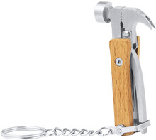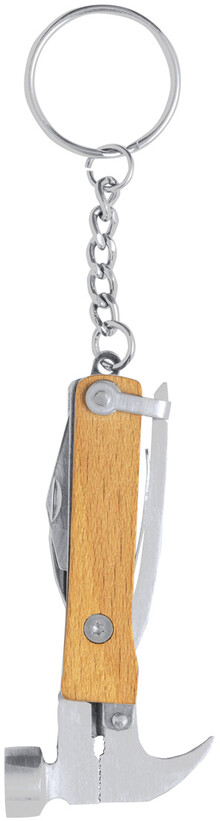 Multifunkční nářadí z nerezové oceli s dřevěnou rukojetí a 7 funkcemi. S kovovým kroužkem na klíče.