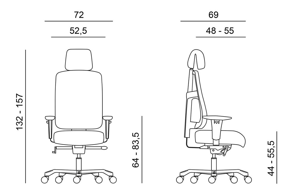 • nastavení výšky opěradla systémem up-down 0-60 mm, opěrka hlavy nastavitelná v rozsahu 0-95 mm, s uzamykáním polohy