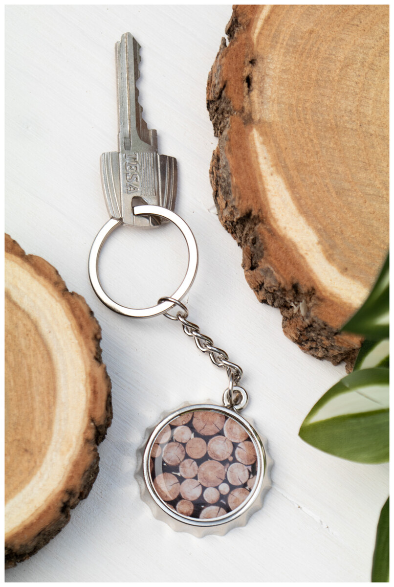 Kovový přívěsek na klíče ve tvaru uzávěru s otvírákem na láhve. V černé dárkové krabičce. Ideální pro epoxy tisk.