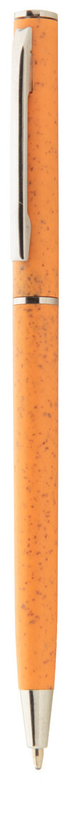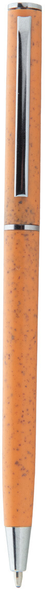 Ekologické plastové kuličkové pero z pšeničné slámy s chromovými detaily. S modrou náplní.