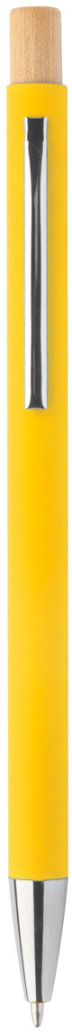 Kuličkové pero z recyklovaného hliníku s pogumovaným povrchem a bambusovým tlačítkem a chromovými detaily. Se speciální vrstvou pro zrcadlové laserové gravírování. S modrou náplní.