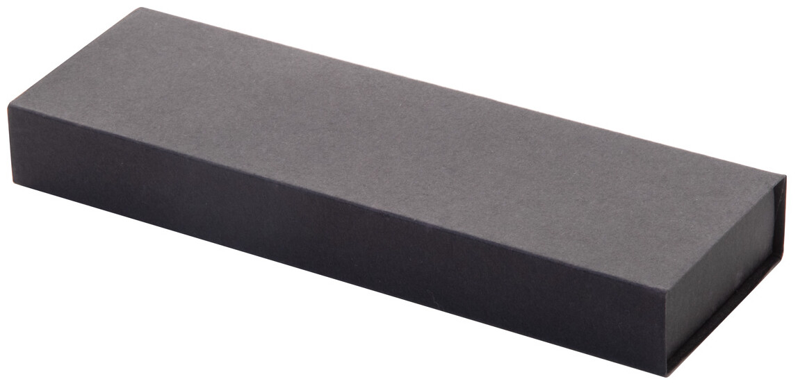 Sada per z recyklovaného hliníku s rollerem a kuličkovým perem v černé papírové dárkové krabičce. S modrou náplní.