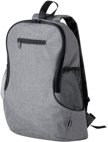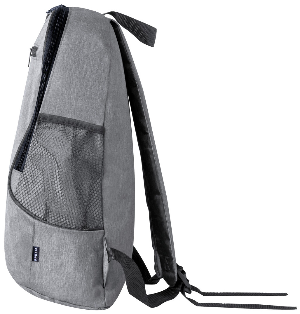 Batoh RPET s přihrádkou na zip a přední kapsou, boční síťované kapsy, polstrovaná záda a ramenní popruhy. 300D RPET polyester s výrazným štítkem RPET.