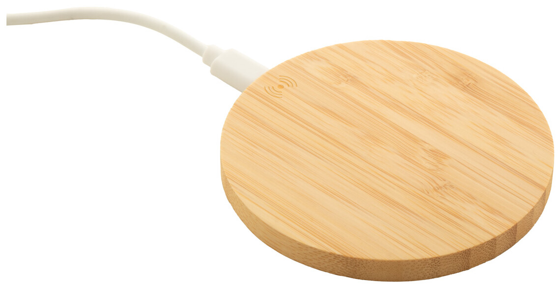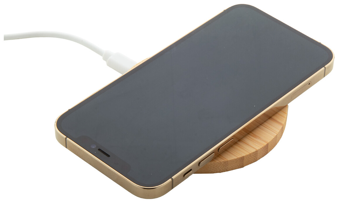 Bezdrátová rychlonabíječka (15W) v bambusovém pouzdře. Včetně USB nabíjecího kabelu.