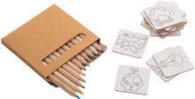 Vybarvovací pexeso v bavlněném pouzdře. Obsahuje tématické papírové pexeso (24 dílků) a dřevěné pastelky (12 ks) v papírové krabičce.