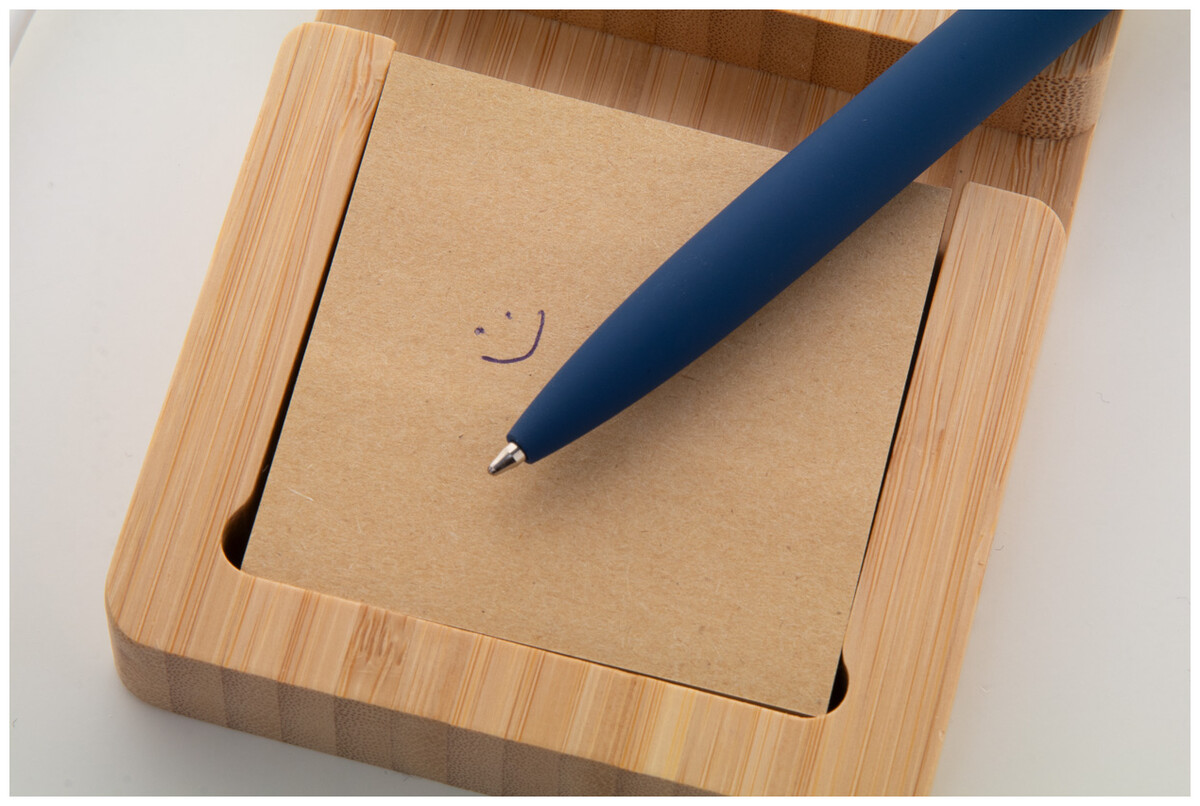 Bambusový USB hub s držákem na mobil a 130 listy kraftových papírových lepících papírků (60x60 mm). Se 2 USB a 2 USB-C porty, USB 2.0. Včetně kabelu s připojením USB a USB-C.