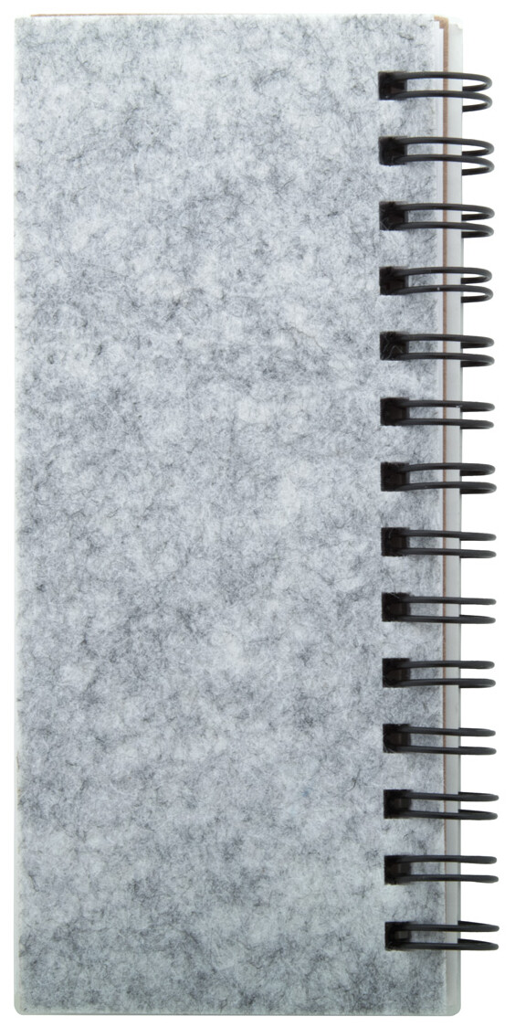 Spirálový blok potažený plstí RPET se 40 linkovanými listy z recyklovaného papíru, 25 lepicími papírky a 125 značkami stránek (v 5 různých barvách).