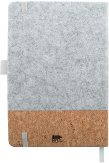 Blok A5 z RPET plsti a přírodního korku s 80 linkovanými listy z recyklovaného papíru. Se záložkou, gumovým páskem a držákem na pero.