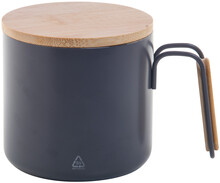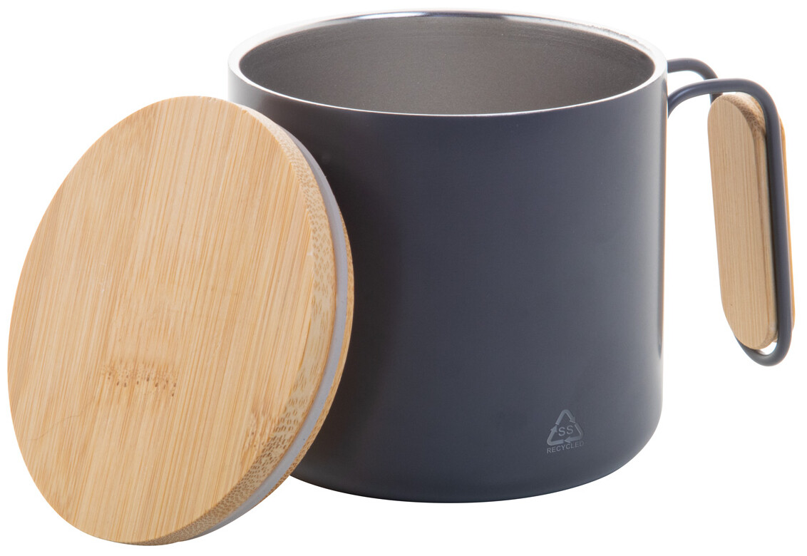 Dvoustěnný termo hrnek z recyklované nerezové oceli s bambusovým víčkem a rukojetí. 300 ml.