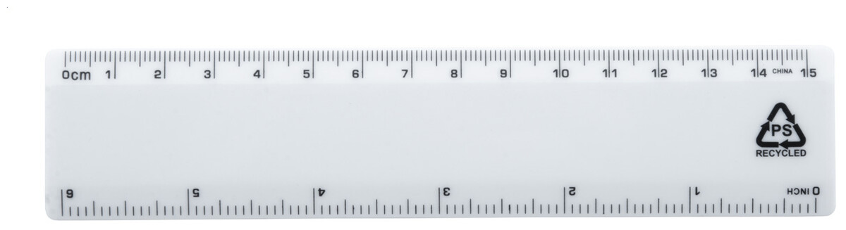 Pravítko z recyklovaného plastu PS, 15 cm.