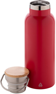 Dvoustěnná vakuově izolovaná termoska z recyklované nerezové oceli s bambusovým víčkem. 500 ml.