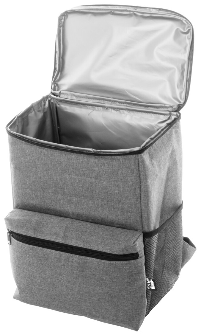 Chladící batoh RPET s hlavní kapsou na zip, přední kapsou a boční síťovanou kapsou. S PEVA výstelkou a výrazným štítkem RPET. Polyester 300D RPET.