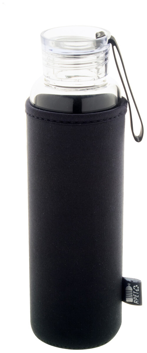 Láhev z recyklovaného skla s PS plastovým víčkem, silikonovým páskem a RPET neoprenovýmobalem, 550 ml. Nevhodné pro sycené nápoje.