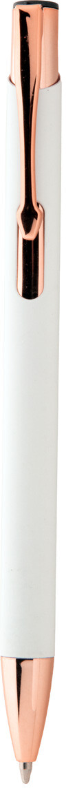 Kuličkové pero z recyklovaného hliníku s pogumovaným povrchem a detaily v barvě růžového zlata. Se speciální povrchovou úpravou pro zrcadlové laserové gravírování v barvě růžového zlata. S modrou náplní.