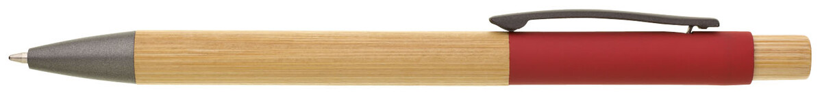 Bambusová propiska s červenou hliníkovou částí pod klipem, ideálním pro značení laserem. Náplň X20 modře píšící. Kolekce SAVE THE NATURE.