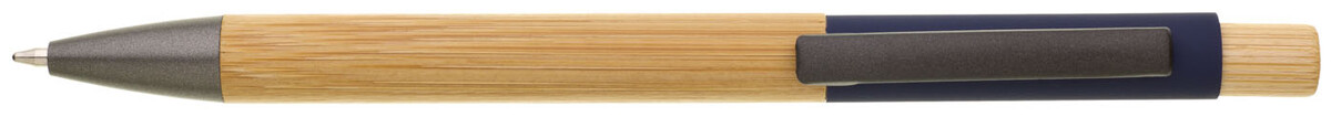 Bambusová propiska s tmavo modrou hliníkovou částí pod klipem, ideálním pro značení laserem. Náplň X20 modře píšící. Kolekce SAVE THE NATURE.