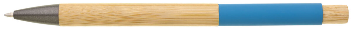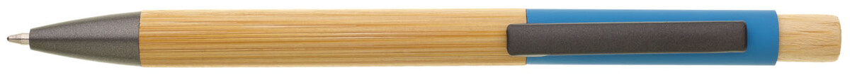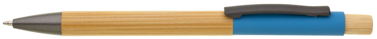 Bambusová propiska s tyrkysovou hliníkovou částí pod klipem, ideálním pro značení laserem. Náplň X20 modře píšící. Kolekce SAVE THE NATURE.