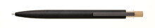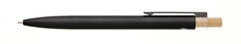 Černá designová kovová propiska z recyklovaného hliníku. Tmavý kovový klip je uchycen v ozdobné transparentní koncovce, doplněné bambusovým cvakátkem. Náplň velkoobsahová, modře píšící. Kolekce SAVE THE NATURE.
