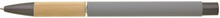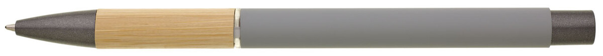 Kovová propiska s hnědo-černými doplňky, šedým pogumovaným povrchem a bambusovým úchopem. Náplň VO modře píšící. Kolekce SAVE THE NATURE.