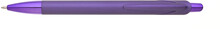 Fialové plastové metalické tělo doplňují lesklé barevné doplňky. Velkoobsahová gelová náplň, modře píšící.