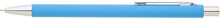 Tenká, jednoduchá propiska se světle modrým pogumovaným tělem a chromovými doplňky. Náplň X20, modře píšící.