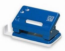 Malý stolní celokovový děrovač. Děrovač s kapacitou až 15 listů, průměr otvoru 5,5 mm, rozteč otvorů 80 mm. Plastový příložník.